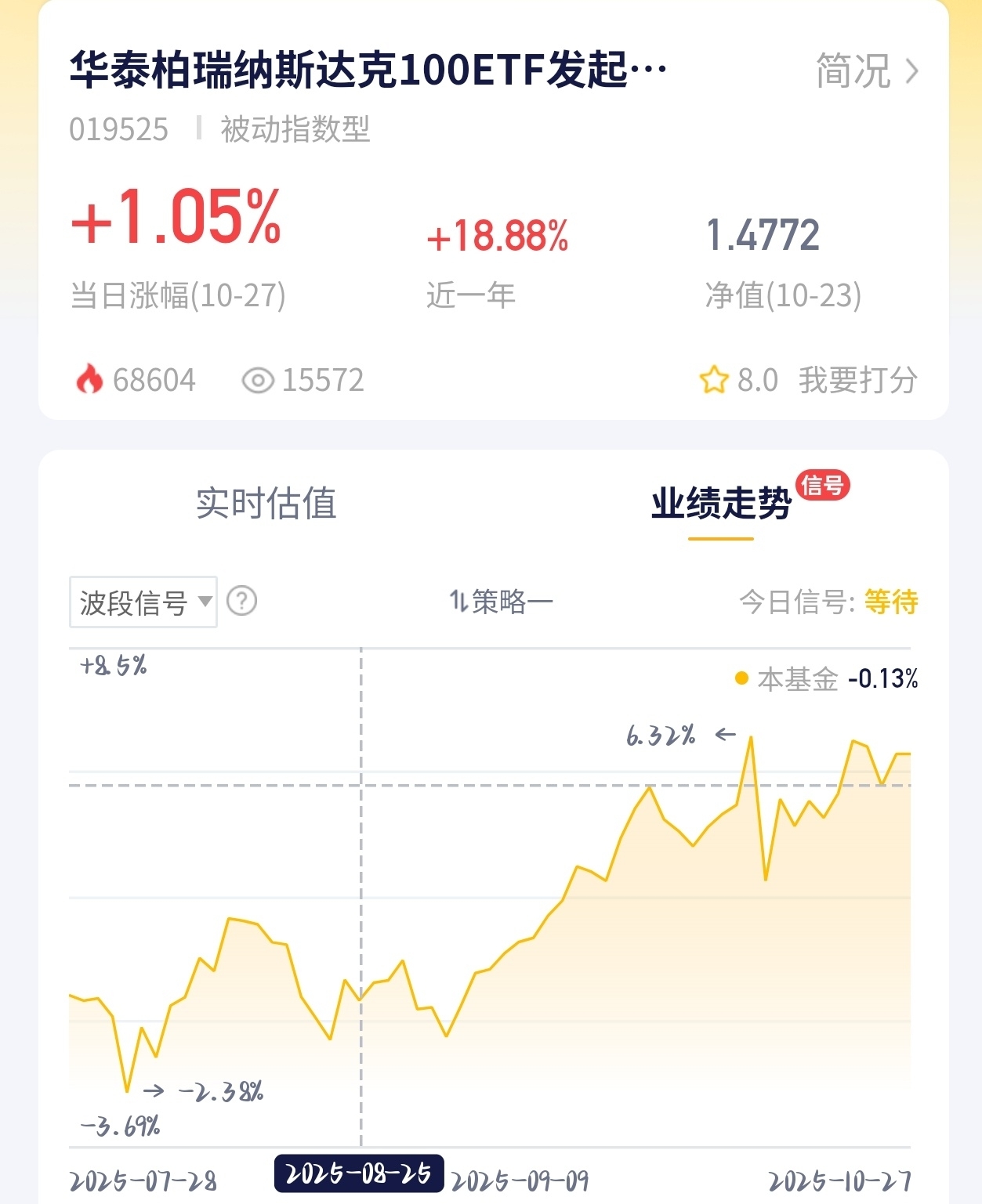 刚看了下,今天恒生科技指数收涨1.43%,资金关注度在提升。想借道基金参与的话,华泰柏瑞恒生科技ETF联接是个选择,10月24日单日涨1.78%,近一年更是涨了30.13%,近期表现很亮眼。