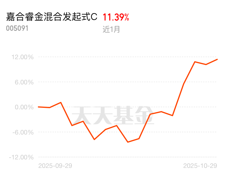 CPO能降低功耗又提升速度,存储芯片是AI必备,这俩赛道太热门。嘉合睿金混合C全押中了,近一个月11.39%,一周10个点的表现让人惊喜。
