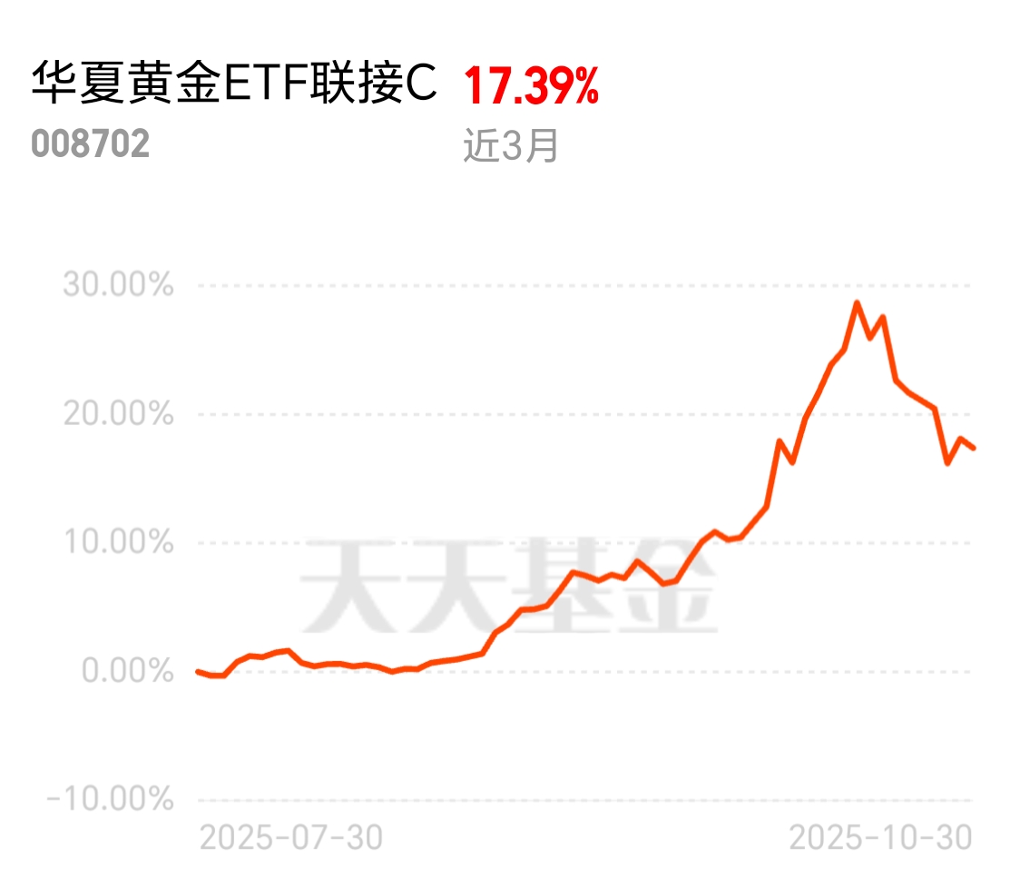 黄金是应对当前行情和地缘因素的最好板块,近3个月收益17%+,近一年收益39%+,这里筑底完成后黄金股弹性比黄金高,上车了$华夏黄金ETF联接C$