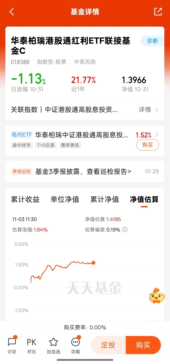 $华泰柏瑞港股通红利ETF联接基金C$ #11月基金投资策略#