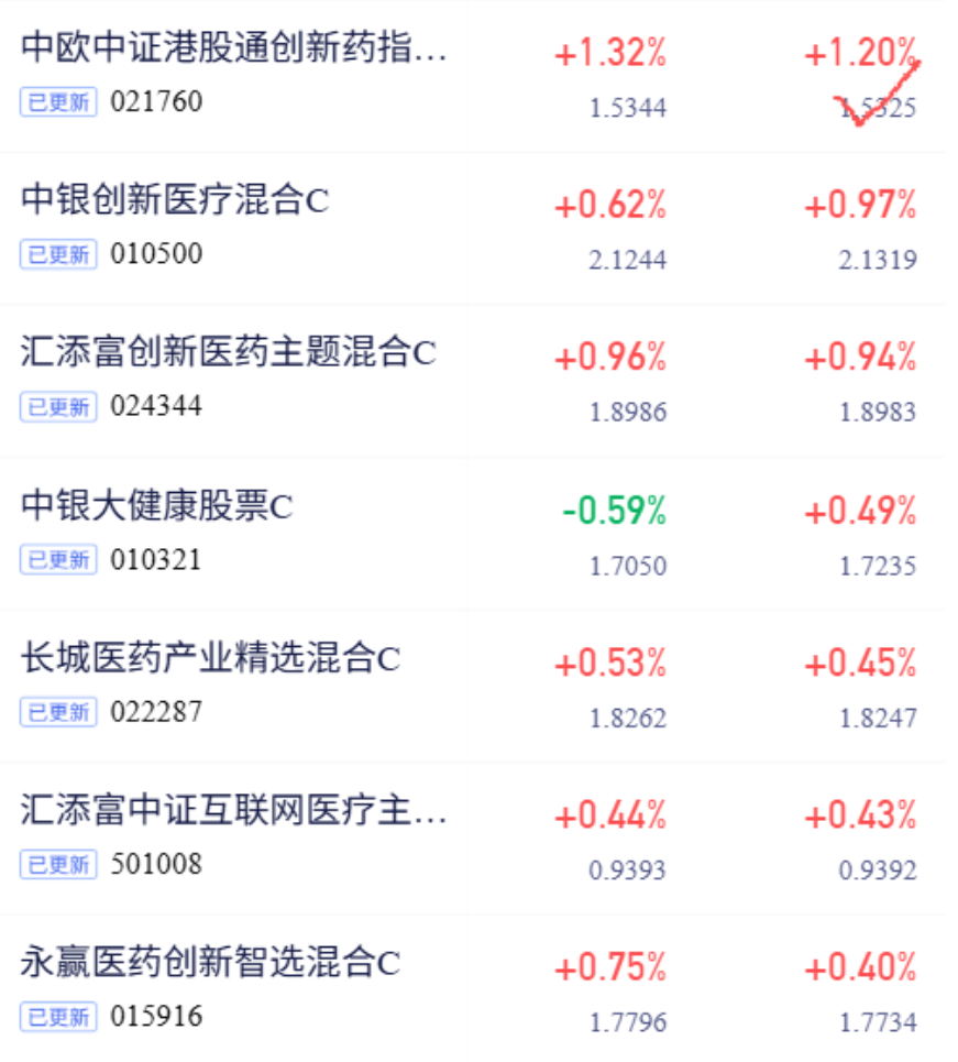 中欧中证港股创新药C,稳步上行今日上涨1.20%!
