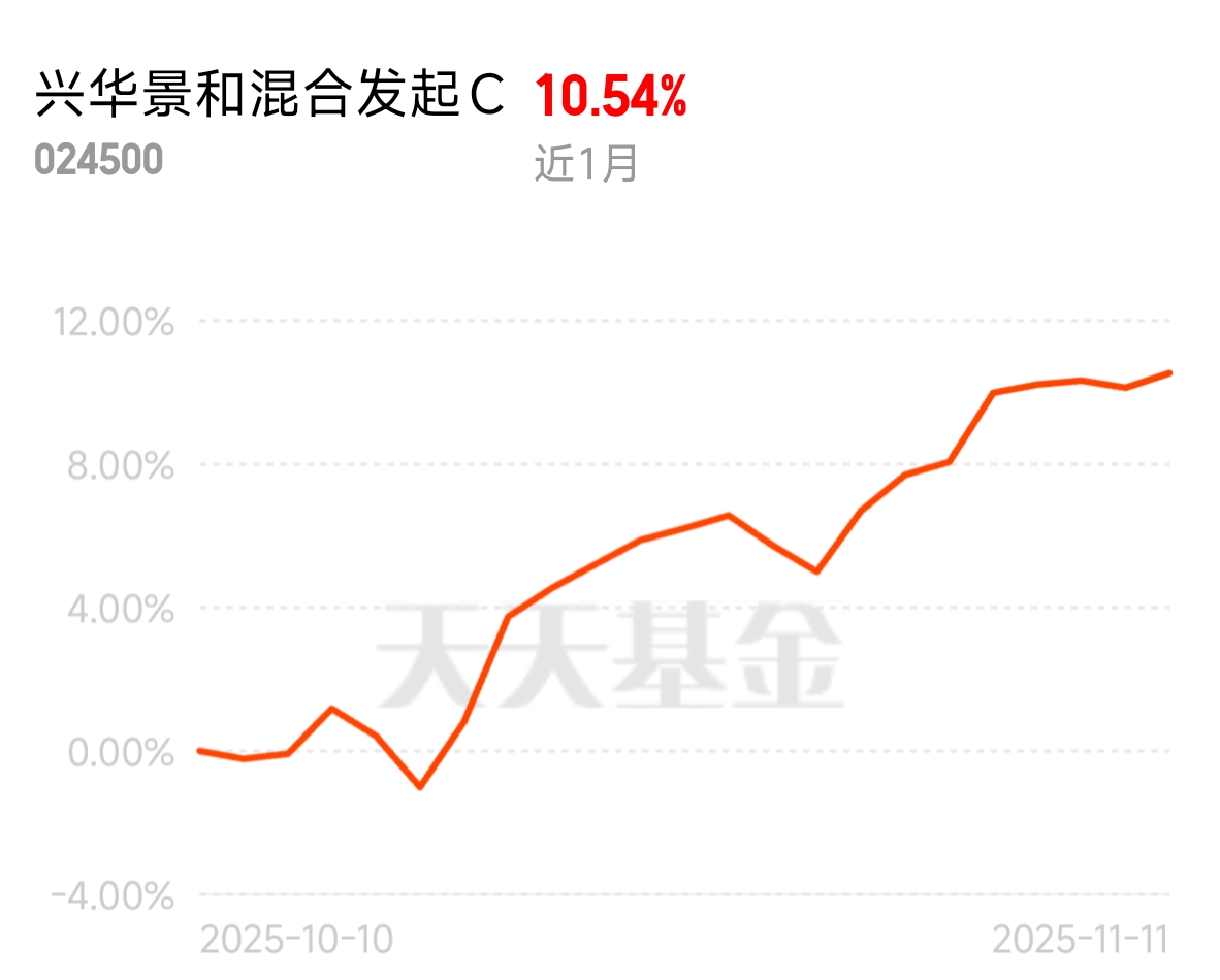 兴华景和从 6 月到现在赚了 21.13%,还一直用小微盘逆向投资的策略,专找被市场低估的好标的。之前总担心追高站岗,买了它才明白,原来逆向布局也能赚这么多,不用跟在别人后面抢热点。$兴华景和混合发起C$
