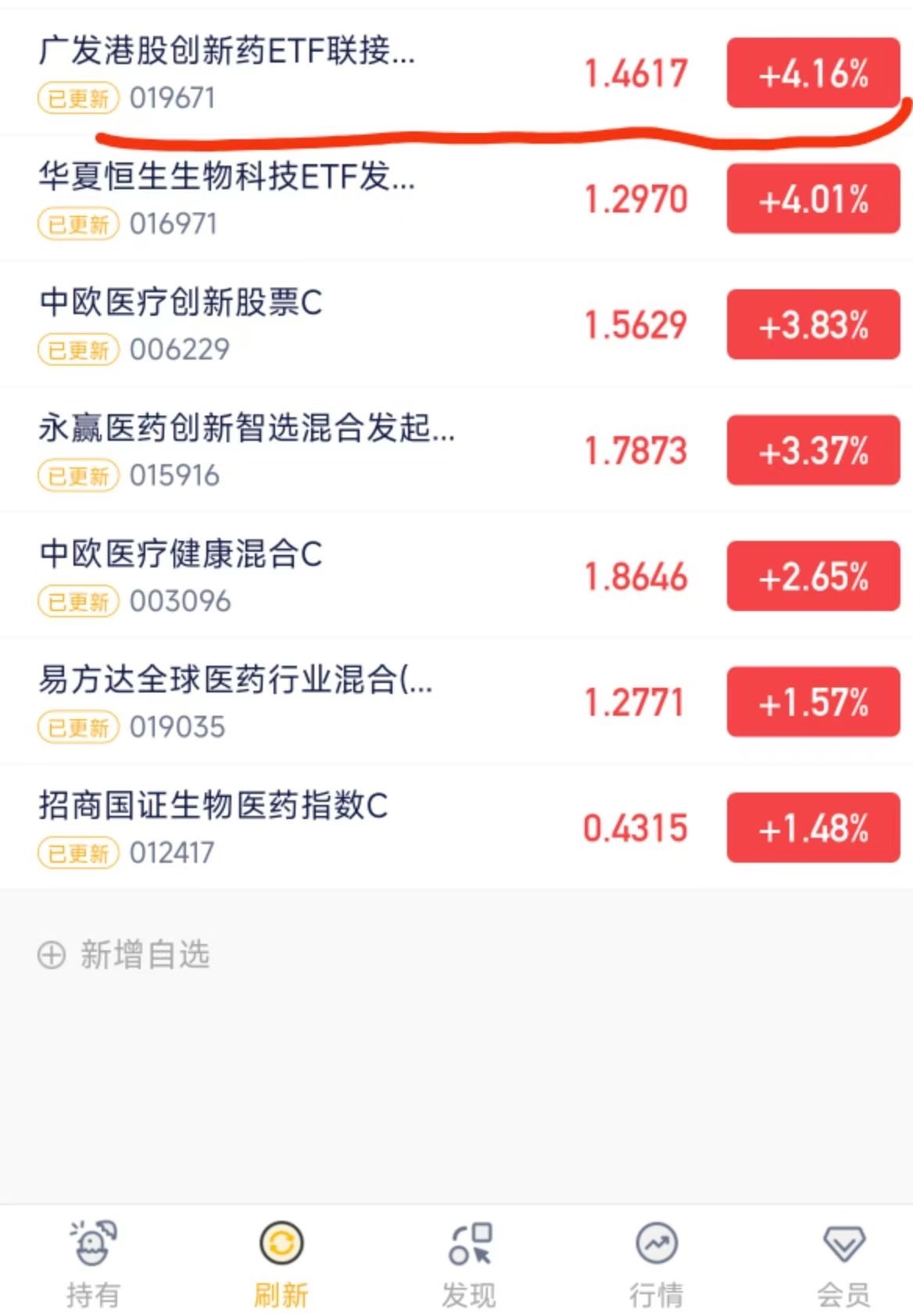 广发港股创新药C净值有4.16%,可以说是独领风骚了朋友们,想入手的抓紧了!!