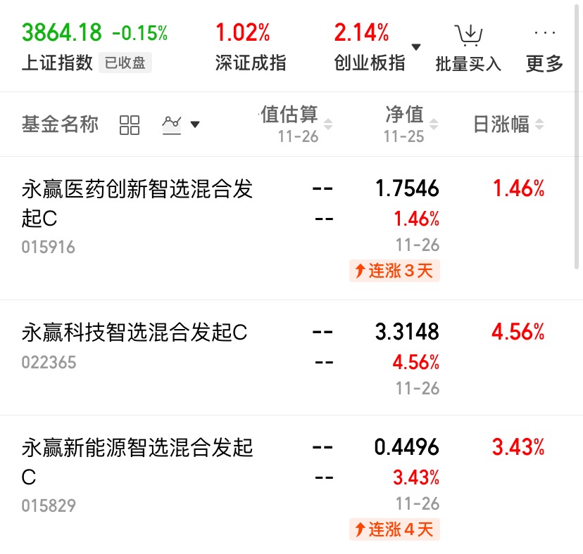 $永赢医药创新智选混合发起C$ :主投创新药赛道,今天上涨1.46%,近六个月收益34.09%;