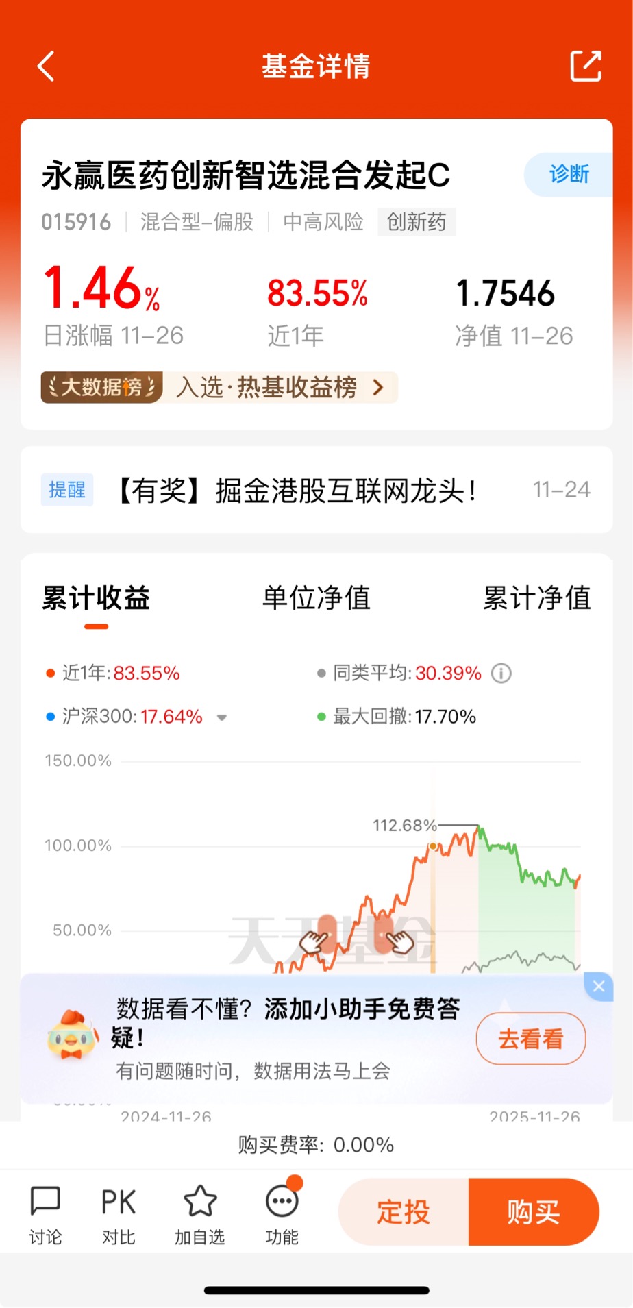 $永赢医药创新智选混合发起C$昨天收1.46%,近6个月收34.09%,近一年收