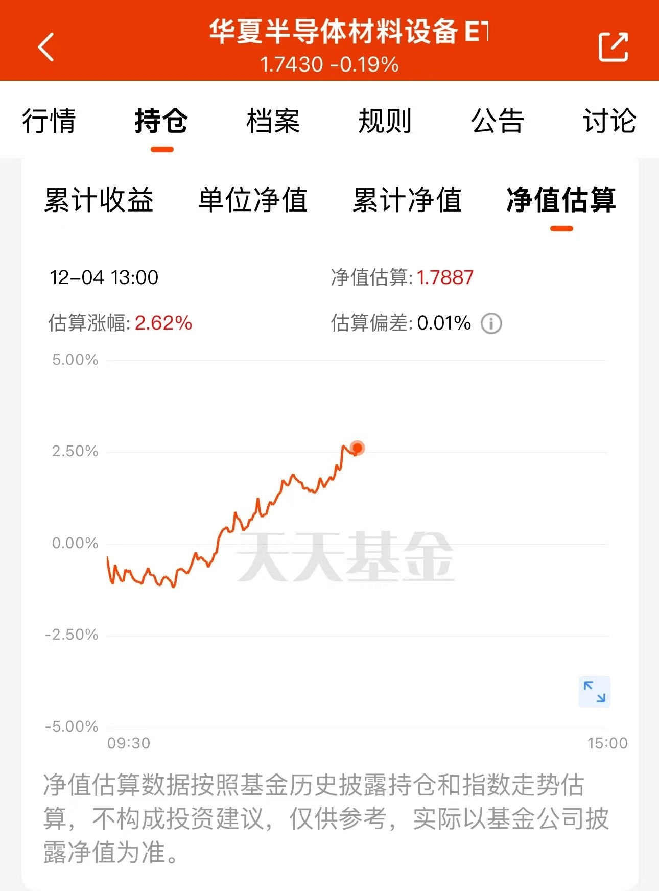 不错,$华夏半导体材料设备ETF联接C$今天强势反弹超2%,持仓都是硬科技头部企