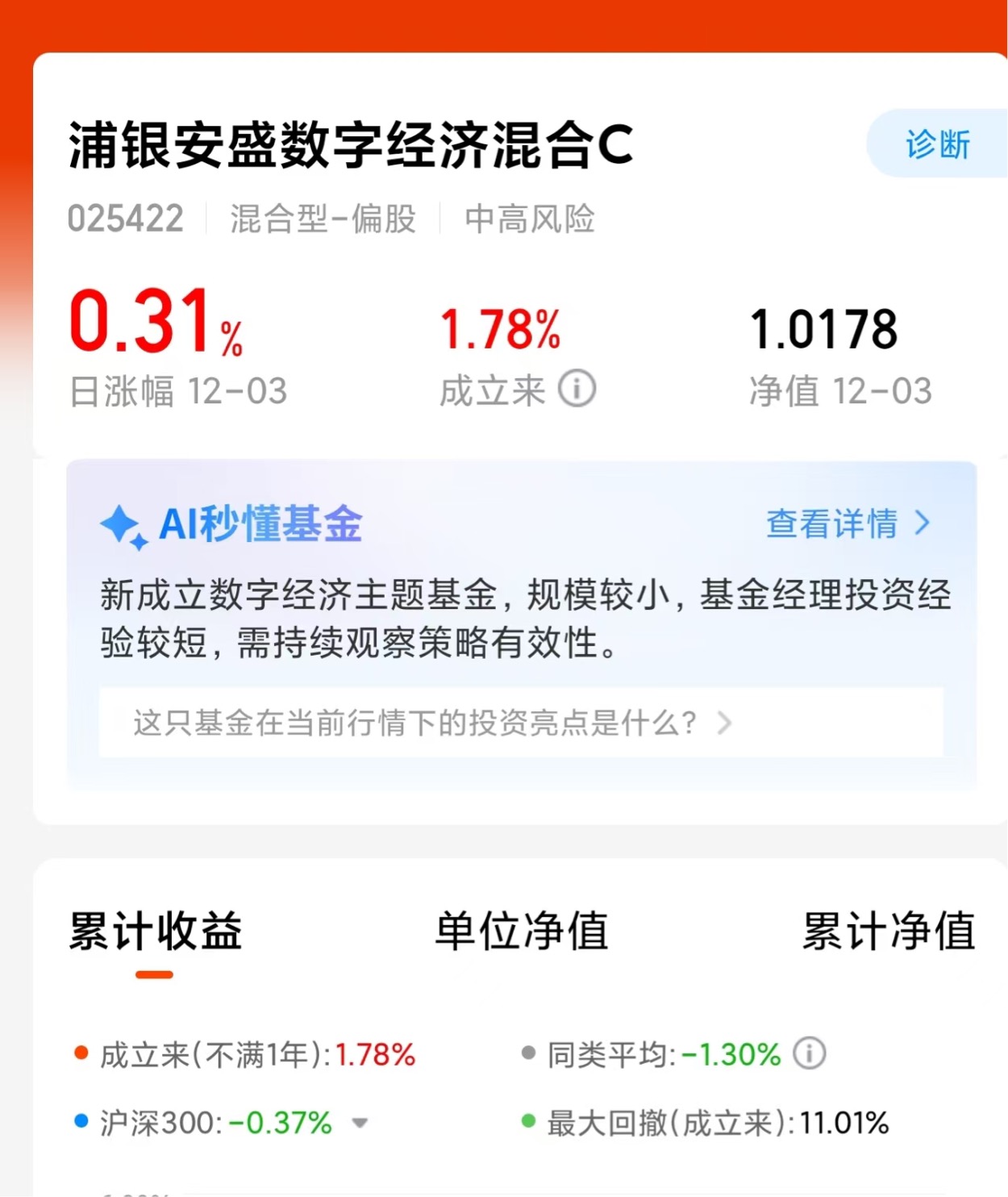 浦银安盛数字经济上周连涨 5天,能涨抗跌,重点关注CPO、PCB等方向,cpo势头仍猛,英伟达Q3业绩超预期,并且继续加码AI领域战略性投资,可谓buff叠满直接上就可$浦银安盛数字经济混合C$