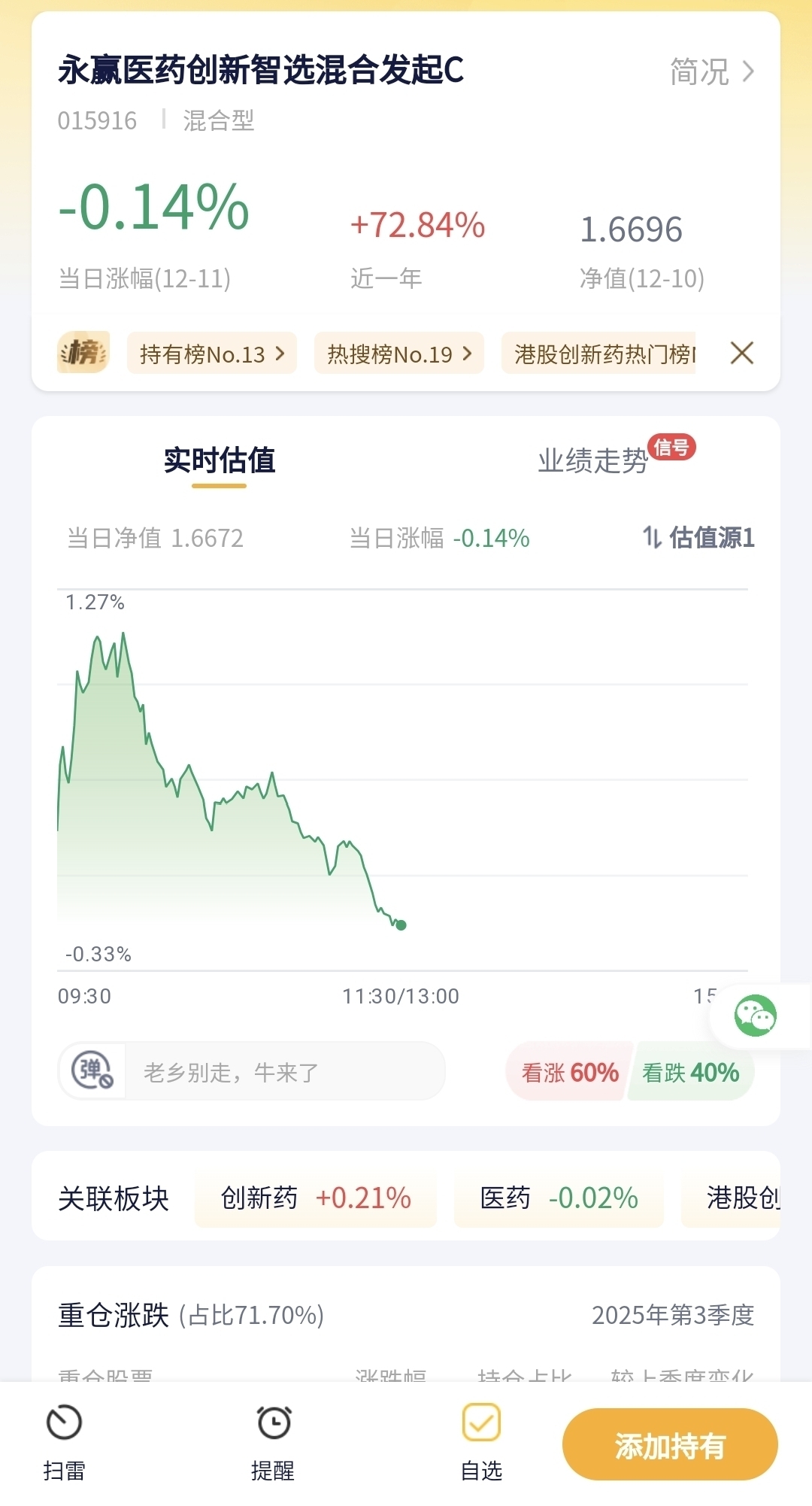 医药板块今天表现一般般,这只基金跟着小跌了点,跌幅不算大,主要是医药创新方向暂时没什么利好消息带动,资金关注度也不高,所以就小幅往下走了走。