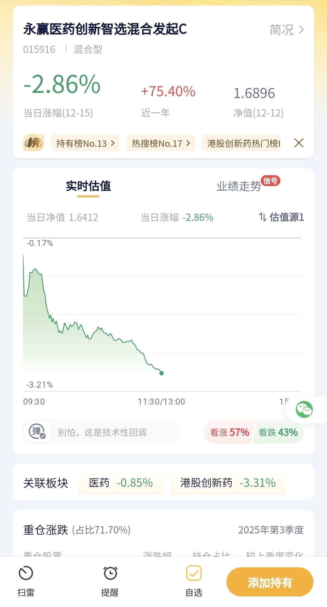 永赢医药创新智选混合发起C今日预估跌幅2.86%!