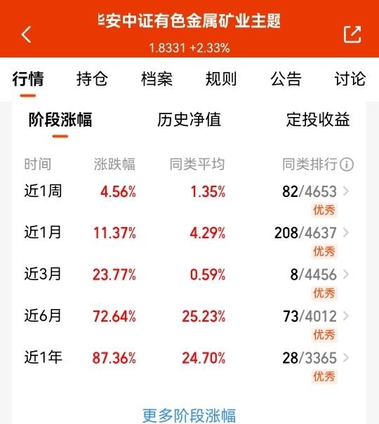 冲就对了!$华安中证有色金属矿业主题指数发起式A$ 单日大涨 2.33%,近 1 年收益飙 82%,紫金矿业龙头撑腰,0 折申购超划算