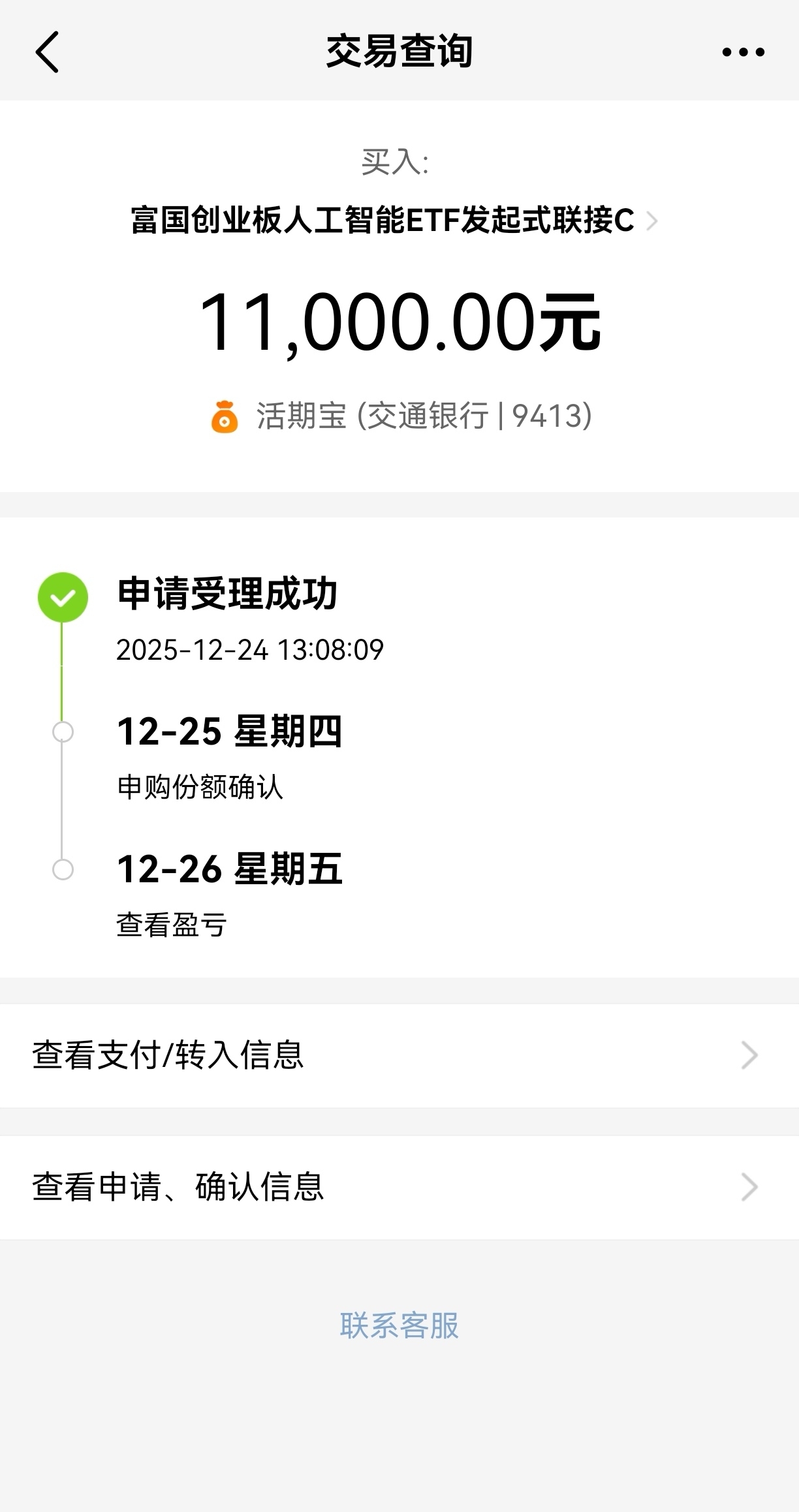今天A股三大指数开盘涨跌不一,还好早盘就所拉升,那不等了,继续加1W$富国创业板人工智能ETF发起式联接C$ 受美股AI产业链集体大涨,直接带动A股人工智能相关板块,此前对AI产业的悲观叙事的市场情绪有所缓和,所以继续拿住就是,这只基金费率也有优势,买入0申购费,满7天卖出0赎回费,挺不错的。