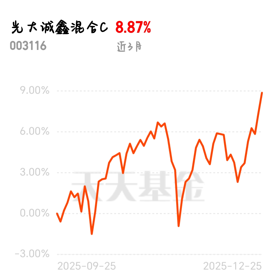 市场震荡上行但板块轮动快,单一个股投资风险太高。光大诚鑫混合C近3月收益8.87
