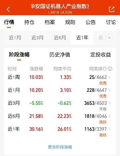 错过亏大了!$华安国证机器人产业指数发起式C$近1年涨30%,日涨4%,AI智造