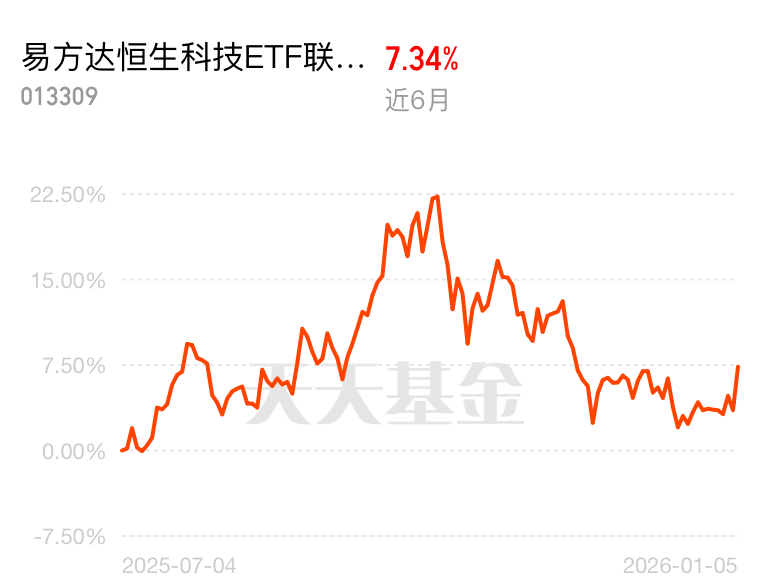 近期恒生科技指数震荡上行,成分股里不少企业业绩超预期,市场信心回升。易方达恒生科技 ETF 联接 (QDII) C 近 6 月 7.34%,不用研究复杂报表,一键布局港股科技核心资产。