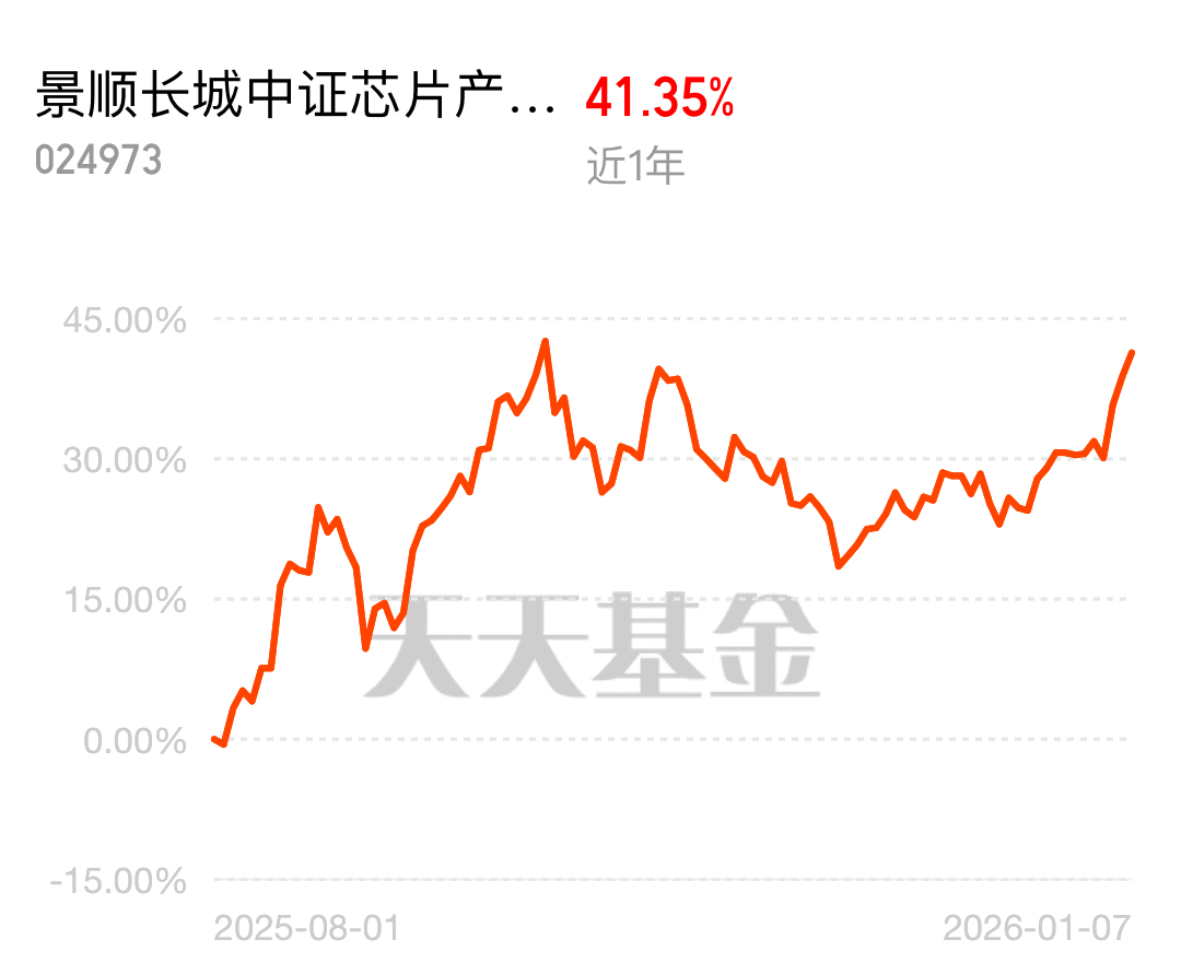 NAND 闪存价格单季度涨超 150%,存储芯片领涨,芯片半导体成为市场主线中的主线。科技方向明确,重点还是芯片领域。$景顺长城中证芯片产业ETF联接C$ 0 申购费,重仓龙头企业,近一年涨超 41%,近 1 月 12.58%,行情跟得稳稳的。