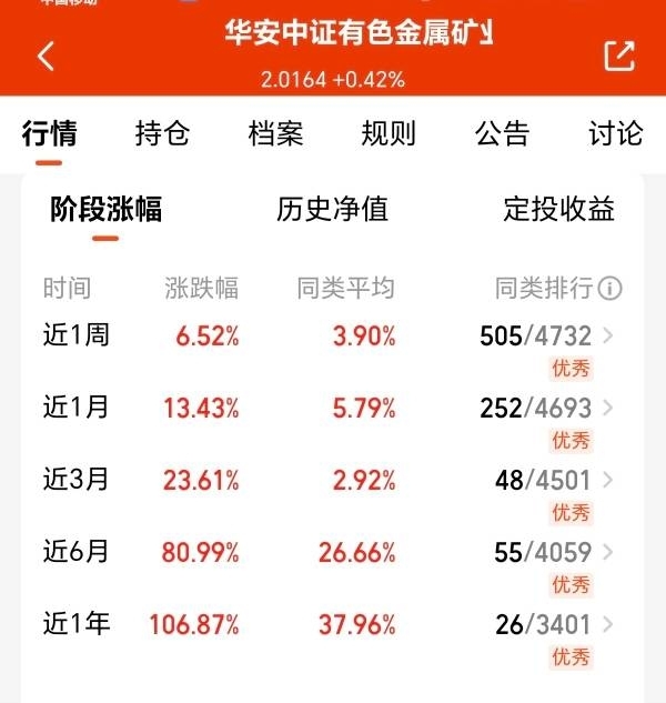 有色风口别错过!这只基金收益全领先,平台超省指数标的,$华安中证有色金属矿业主题