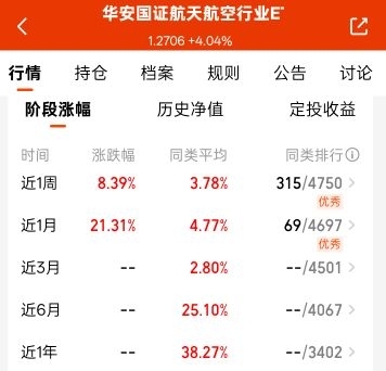 逆势领跑全场 $华安国证航天航空行业ETF发起式联接C$ 大涨 4.04%,近一月 21.31%,全市场唯一场外指数,强趋势闭眼跟