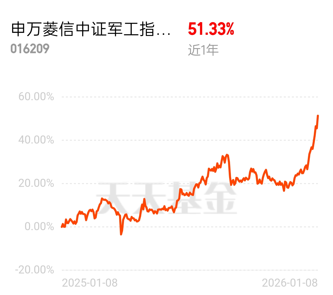 商业航天产业链上下游协同发展,生态完善,军工板块今天继续当大哥。近 3 日涨幅近 9 个点,申万菱信中证军工指数今日估值超 5 个点,指数化布局龙头标的,重仓商业航天,修复快,近 1 年 51.33%,当下适合继续上车。$申万菱信中证军工指数(LOF)C$