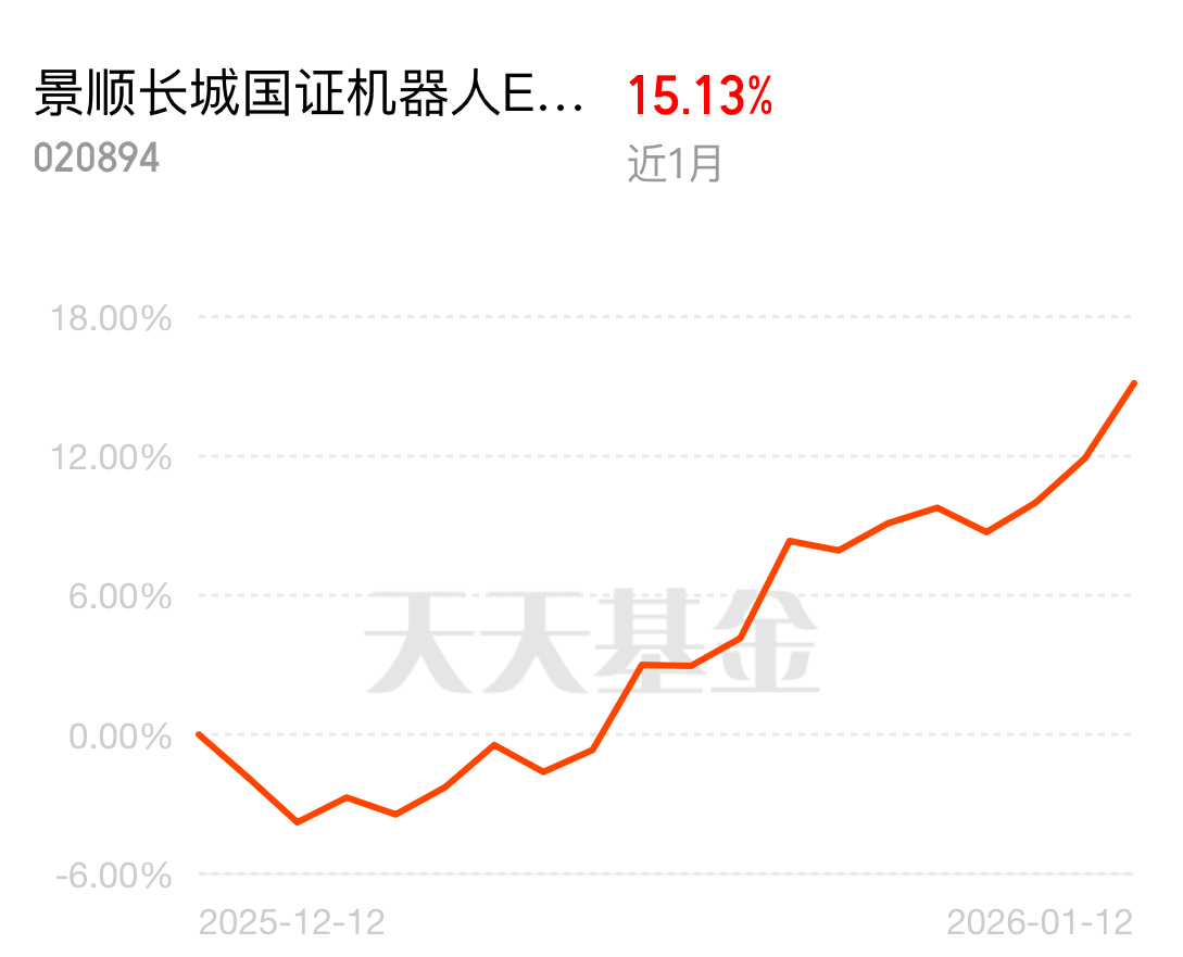 机器人消费级市场爆发,万元级产品拉近大众距离,开年表现强势,国证机器人昨天涨 3 个点。景顺长城国证机器人 ETF 联接 C 精准跟踪指数,近一月涨幅超 15%、近 6 月 31.41%,今天回调给上车窗口,7 免成本友好,适合赚了就跑不恋战。$景顺长城国证机器人ETF联接C$