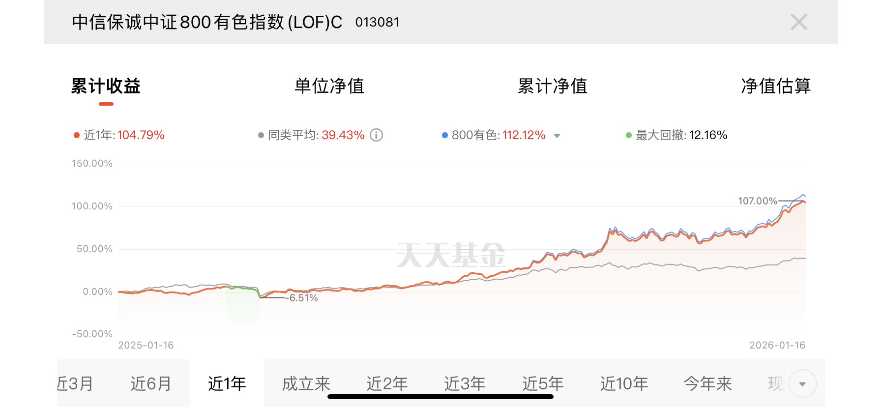 机构持续上调有色板块目标价,市场预期向好,市场走出有色金属低开后回升的强劲行情,近 1 年涨幅 104.79%。中信保诚中证 800 有色指数 (LOF) C 把握机构看好的机会,跟踪行业目标趋势,场外申购简单直接,让你轻松跟上机构步伐。