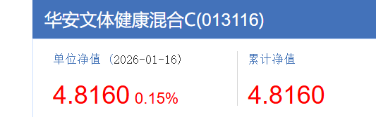华安文体健康混合C(013116)上周五涨了0.15%