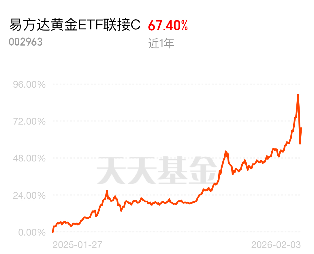 黄金这波小调整就是给机会,现在避险需求越来越高,央行还在持续增持,长期涨势有底气。易方达黄金 ETF 联接 C 近一年涨 67.40%,当下位置正合适,继续布局。$易方达黄金ETF联接C$