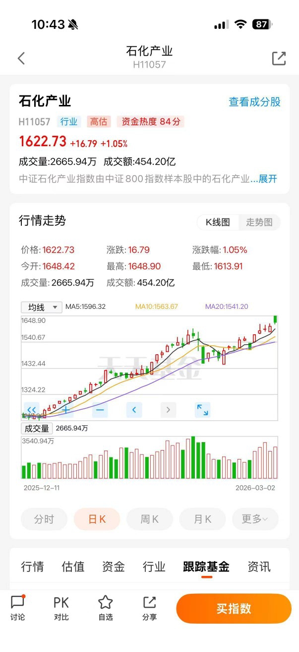 最近石化行情启动,落后产能出清,龙头份额提升。覆盖上游油气、基础化工、新材料等全领域,比单买一部分更稳。一键布局整个行业,省心省力,适合中长期配置。