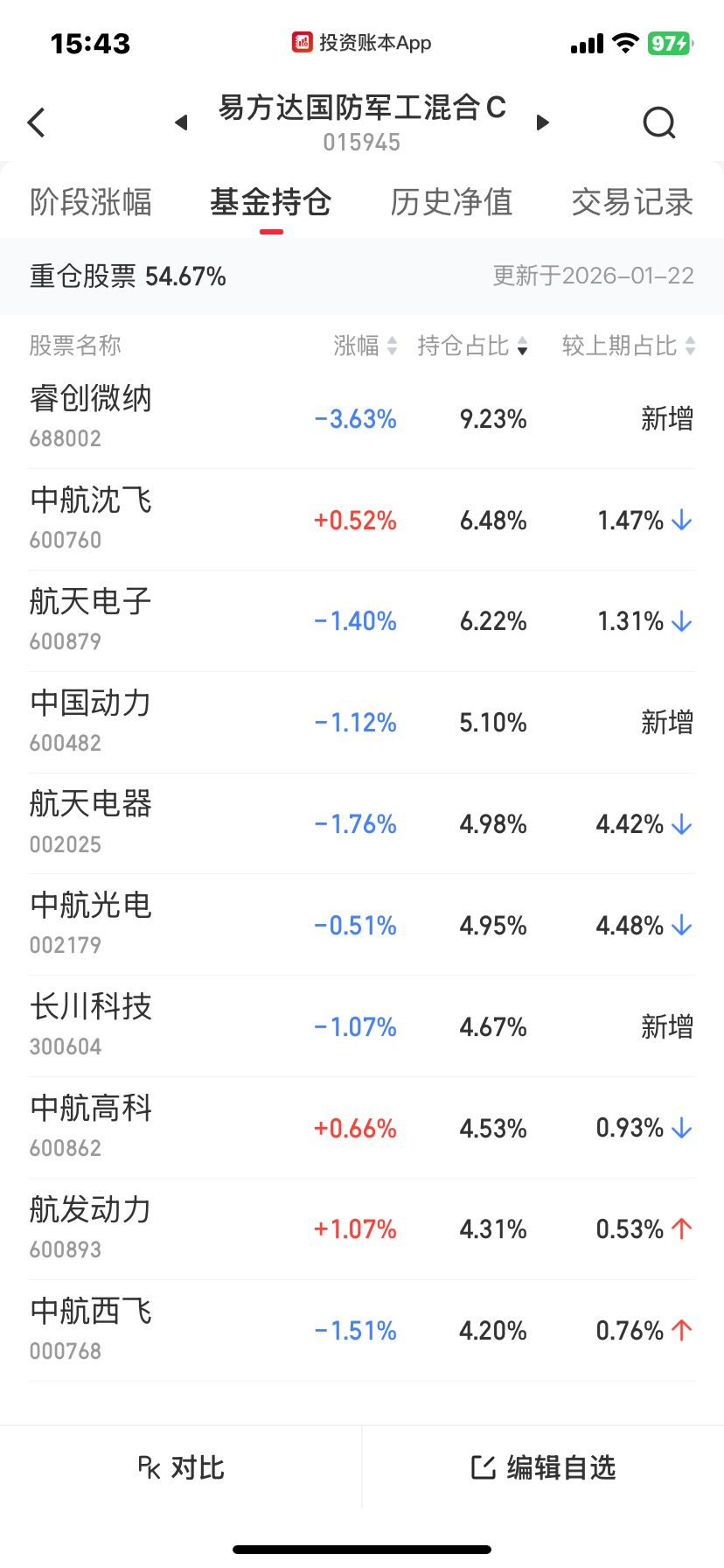 今天的收盘估值播报: -0.95%