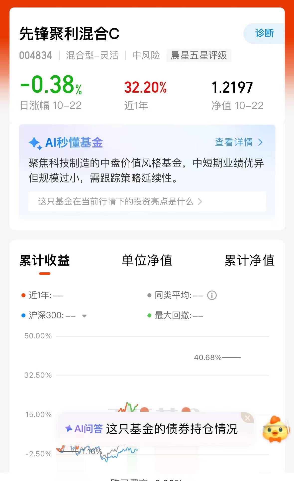 先锋聚利混合C$科技板块业绩香的很收今天回调就收获了%近1年收32.20%,近3