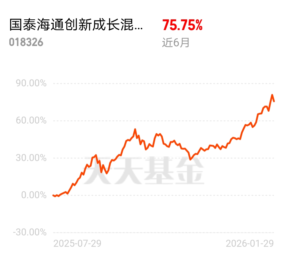 看好半导体的长期行情,政策给足支持技术也不断创新,选主动基就选国泰海通创新成长混合发起 C,近 6 月 75.75% 的收益很能打,走势稳还屡创新高,准备放一段时间