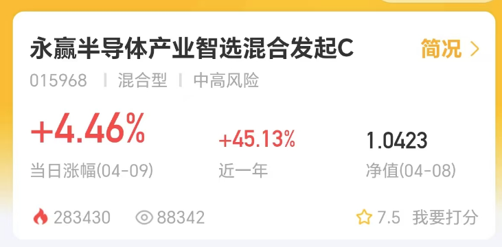 今天半导体板块直线拉升,华岭股份、芯动联科涨超10%,机构看好国内半导体产业后续的发展,$永赢半导体产业智选混合发起C$ (015968)凭借对光刻机等核心赛道的精准布局,成为投资者争相关注的“高弹性利器”,今日预估大涨近5%。
