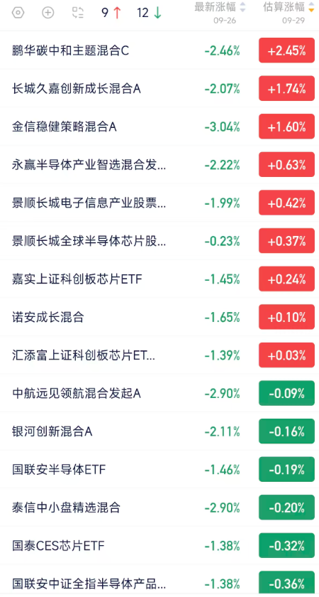 半导体基金估值午间播报,期待周一开门红,是否持股过节呢
