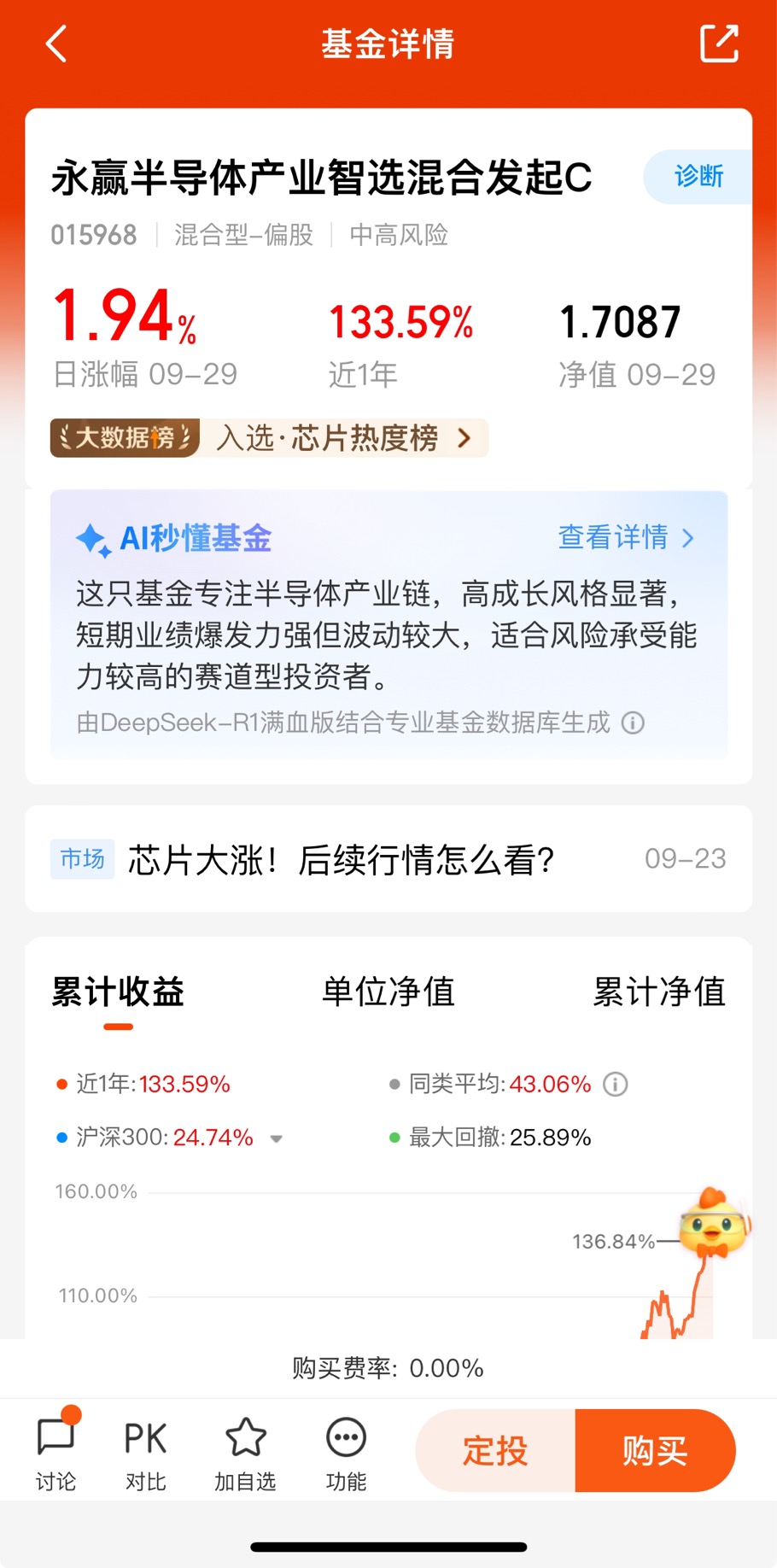 昨天收1.94%,近一个月收12.72%,近3个月收46.22%,近一年收133