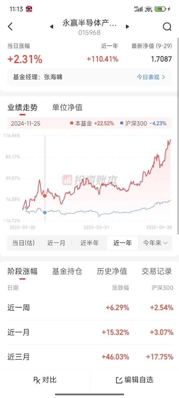 轮到半导体表演了,今天就迎来了狂飙。永赢半导体C015968今天估值大涨2.31