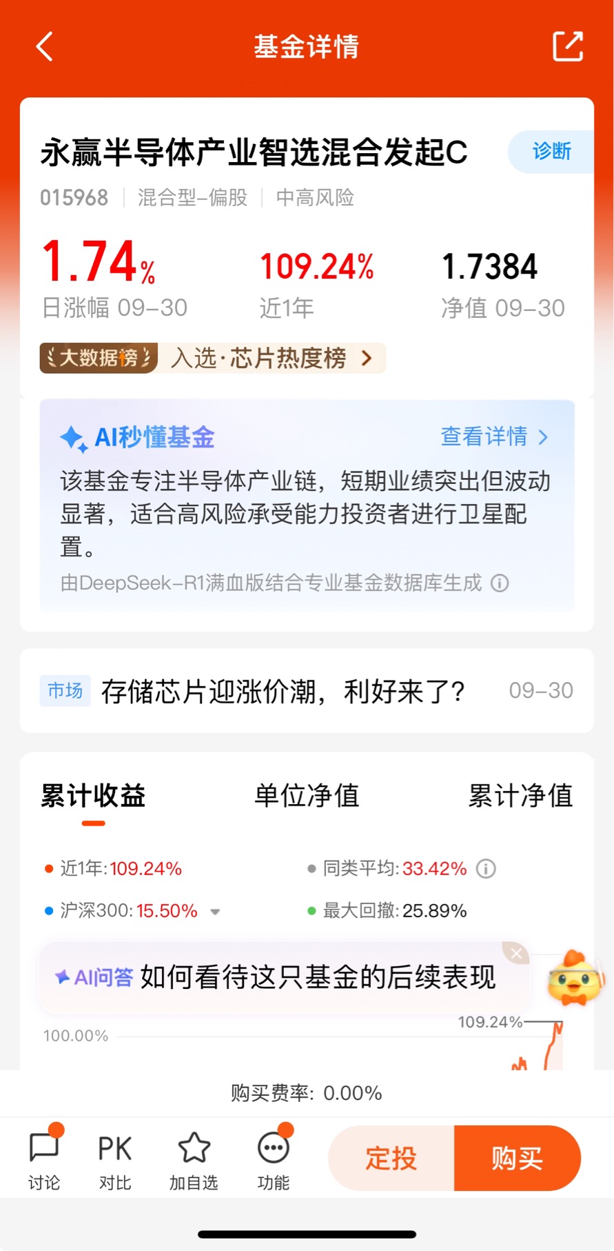 $永赢半导体产业智选混合发起C$ 节前收1.74%,近一个月收14.68%,近3个月收45.22%,近6个月收58.04%,近一年收109.24%,各个阶段表现优秀!当前存储芯片或正处于 "AI 需求爆发 + 供给收缩 + 国产替代" 的三重利好共振期。无论是受益于涨价的存储芯片本身,还是上游设备、材料环节,以及承接国内算力需求的本土企业,都有望在这轮景气周期中获得成长机遇!