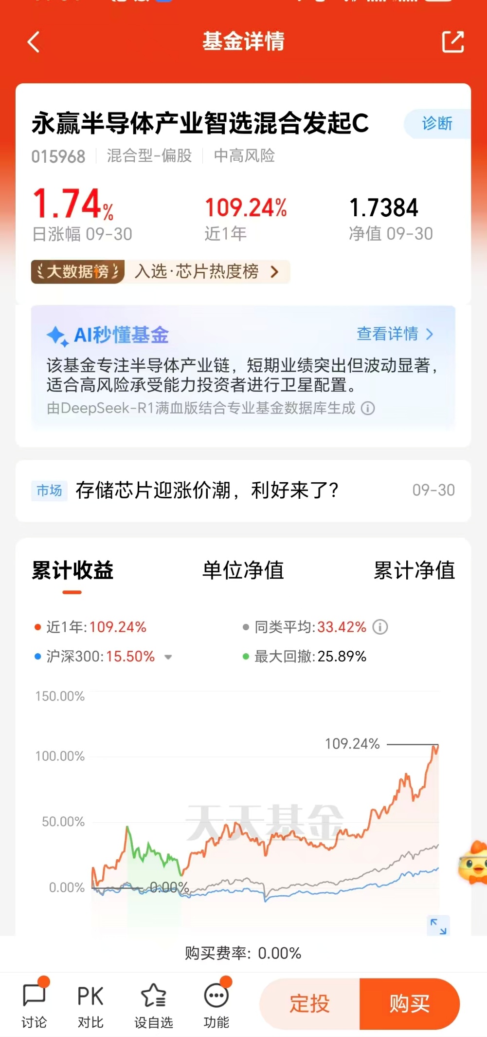 永赢半导体产业智选混合C(015968)的核心优势在于其对产业链龙头的深度布局。业绩表现亮眼,截至最新数据,基金近1周上涨5.70%,近1月上涨14.68%,近3月上涨45.22%,近6月上涨58.04%,近1年涨幅更是高达109.24%,充分体现了专业管理团队对产业趋势的精准把握。