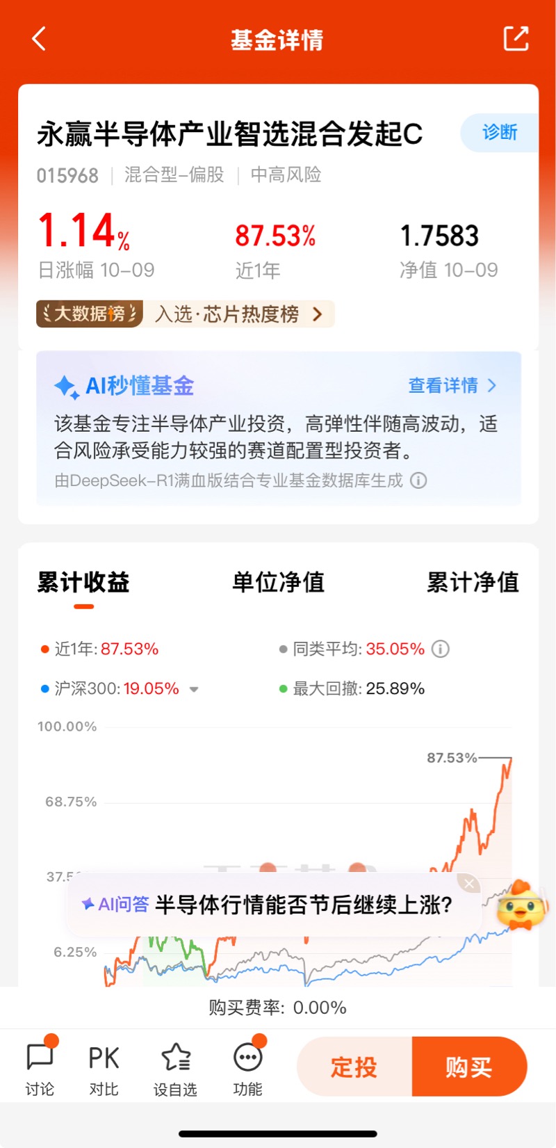 #存储芯片掀涨价潮!投资机会几何?# AI技术快速发展,对高算力芯片需求持续增长,AI芯片市场规模不断扩大,国产AI芯片企业加速布局,市场份额逐步提升,AI应用落地将带动消费电子等传统领域换机需求,进一步拉动半导体需求。$永赢半导体产业智选混合发起C$ 昨天上涨1.14%,近一个月收益25.32%,近三个月收益51.19%,近一年收益87.53%;长期业绩优秀;国产替代仍是核心主线,设备、材料等关键环节国产化率有望持续提升,政策支持和市场需求将推动国产半导体企业加速突破,实现自主可控。