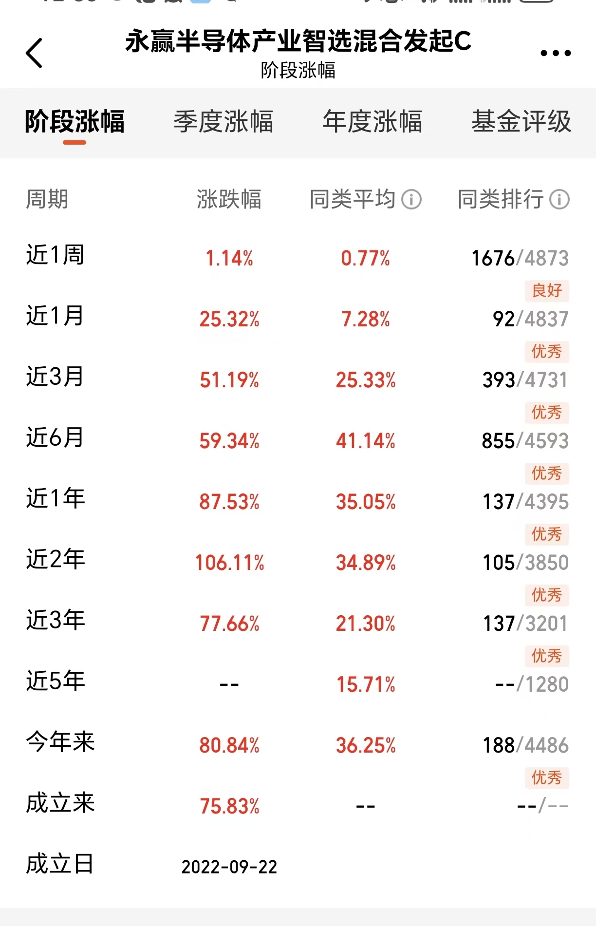 永赢半导体产业智选混合C(015968)由从业经验超过两年的基金经理张海啸管理,他在任期内实现了80.19%的任职回报。基金采取主动管理策略,持股集中度高,前十大重仓股涵盖从光刻技术到材料的多家细分领域龙头,力求在控制风险的同时获取超额收益。在半导体产业自主可控与技术升级的双重驱动下,永赢半导体产业智选混合C(015968)通过深度聚焦光刻机这一核心环节,为投资者提供了一条参与芯片行业发展的便捷途径。#存储芯片掀涨价潮!行业或迎超级周期#