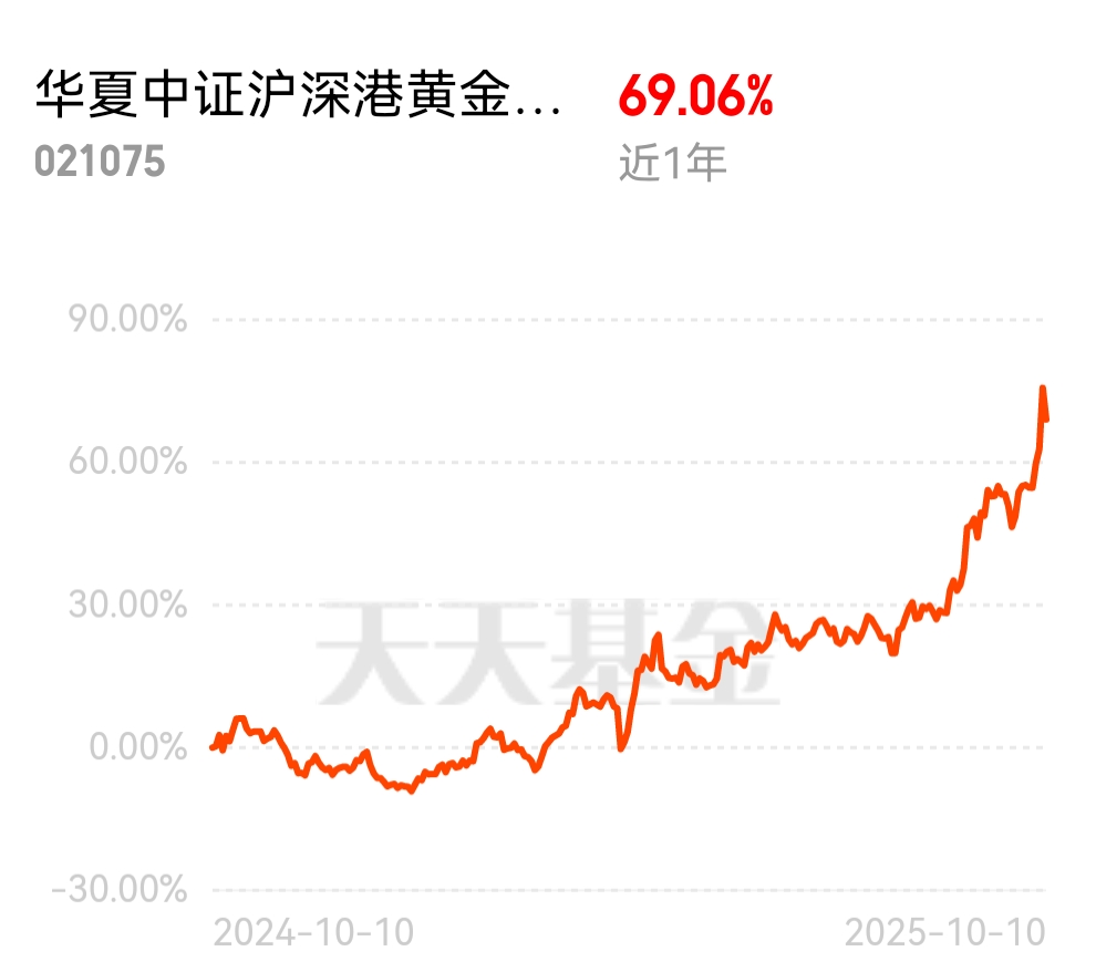 黄金避险需求攀升,黄金股的弹性更大,今年以来上涨86%,而且华夏的7天免赎回费,多放点到这里吧$华夏中证沪深港黄金产业股票ETF发起式联接C$