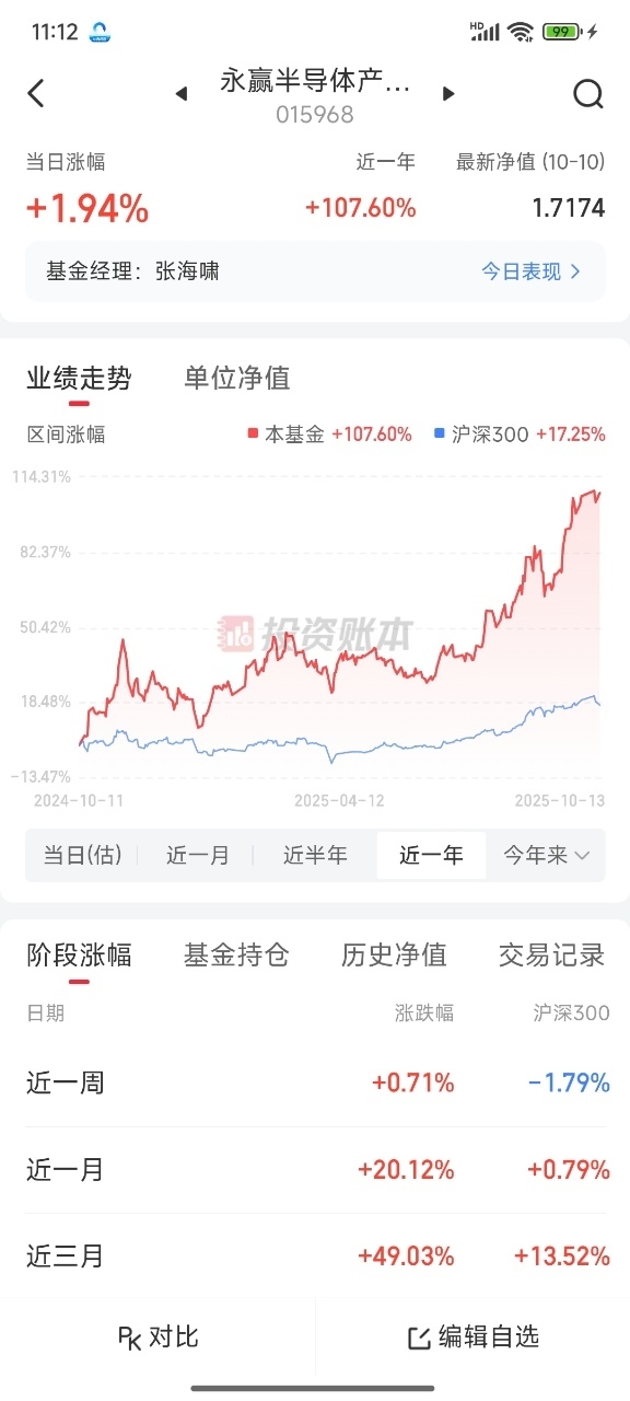 半导体就是我自选中最亮的仔,今天又迎来了大涨。永赢半导体C015968今天估值大涨1.94%,近六个月涨幅55.18%,近一年涨幅93.49%,这基拥有抗风险能力和出色的盈利能力,要继续维持着涨势哦,今天吃肉没问题。