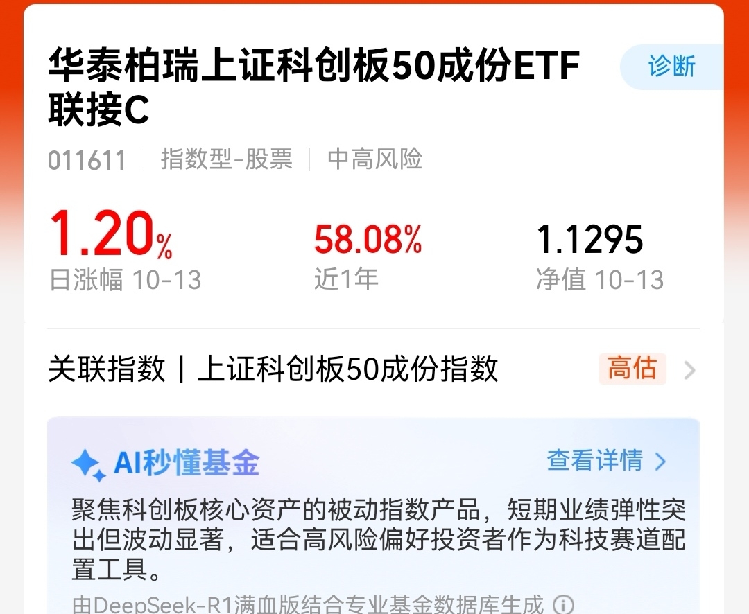 注意到$华泰柏瑞上证科创板50成份ETF联接C$今日上涨1.20%,累计三个月涨