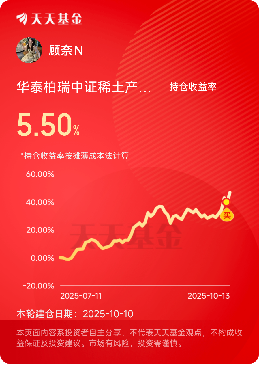 昨天$华泰柏瑞中证稀土产业ETF发起式联接C$ #晒收益# 净值上涨5.56%,表现真不错!新能源车、风电快速发展,稀土需求端支撑越来越强。
