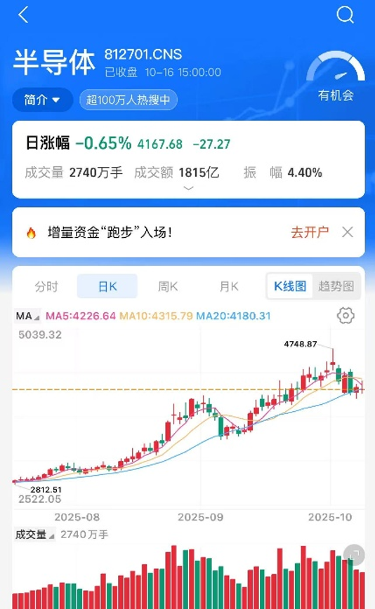 从市场表现来看,半导体板块早盘一度强势上攻,随后震荡回落,最终收跌0.65%。这种短期波动主要受到几方面因素影响:一是国际供应链出现突发性限制措施,引发市场对产业链稳定性的担忧;二是部分个股的两融政策调整,被市场解读为负面信号;三是消费电子需求疲软导致部分芯片价格回落,叠加稀土出口管制等政策扰动,加剧了投资者的短期忧虑。