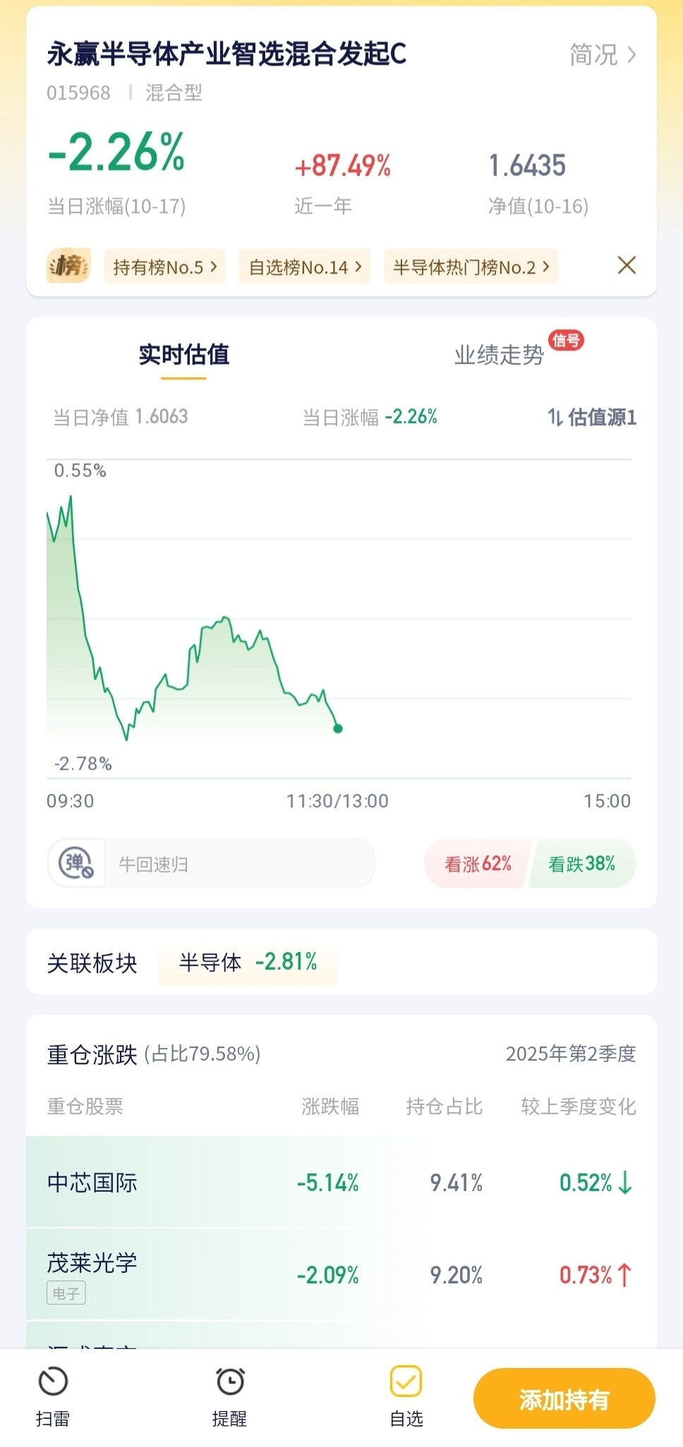 半导体今天表现不行,这只基金也跌了。估计是半导体行业短期缺乏利好,资金观望,它就跟着跌了。