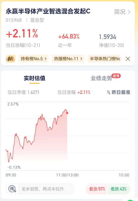近期,A股市场在经历前期的震荡与调整后,逐步开启反弹行情。在这波反弹中,半导体板块中的光刻机细分领域展现出强劲弹性与较高确定性,成为表现突出的板块之一。其中,$永赢半导体产业智选混合发起C$ (015968)紧密聚焦光刻机这一核心赛道,精准捕捉半导体行业最具潜力的部分,今日涨幅已超2%!