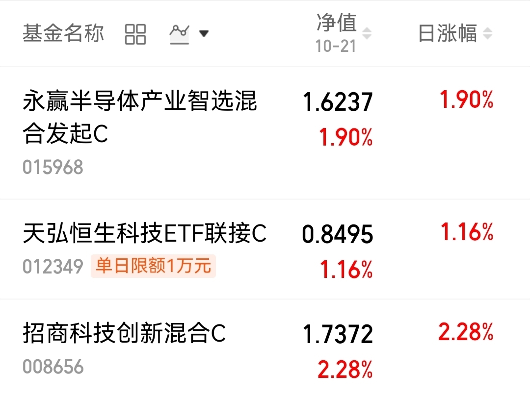 这支$招商科技创新混合C$ 昨天继续收涨2.28%;
