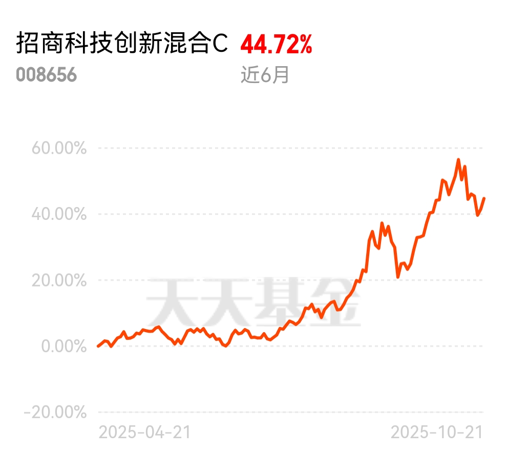 指数高位震荡之际,资金还是倾向于抱团科技为主;这支$招商科技创新混合C$昨天继续
