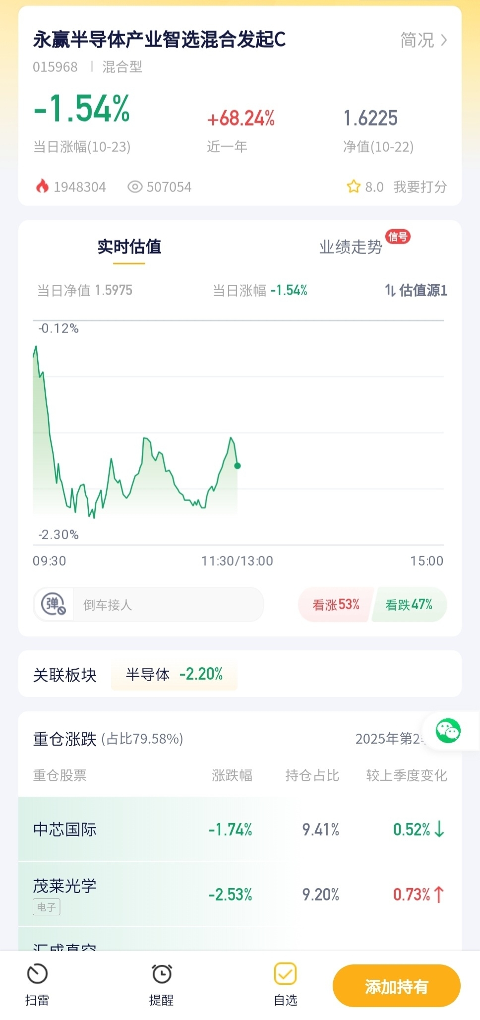永赢半导体产业智选混合今日预估跌幅1.54%!