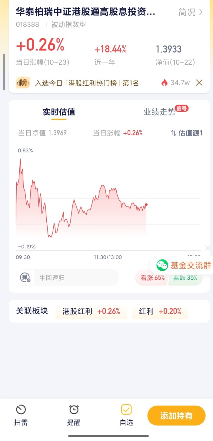 今天打开行情软件一看,大盘忽上忽下的,贸易谈判和十五五规划的消息没定,谁都没底,但红利板块是真稳!电力、交通运输这些和红利挂钩的板块,居然逆势飘红,连平时波动大的煤炭股,今天都没怎么跌,明显能感觉到资金都在往这凑 。咱普通人买基金,别追求一夜暴富,稳最重要。华泰柏瑞那只红利基金,就盯着港股通里高分红的股票,不像主动基金容易被基金经理的判断影响,现在加些仓位,给自己的投资组合托底,应对市场波动也有底气 。$华泰柏瑞港股通红利ETF联接基金C$