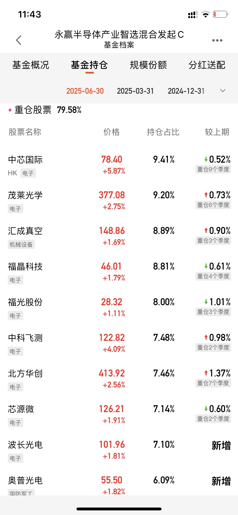 $永赢半导体产业智选混合发起C$ 目前持仓股表现出色,全红啊,涨势回归了!这里专注半导体产业链的行业主题基金,聚焦光刻机产业链,近三月32.08%涨幅,近一年69.14%涨幅,业绩表现还是优秀亮眼的了,永赢半导体是主动型产品,选股灵活,值得期待了!#15连阳!农行总市值逼近2.9万亿#